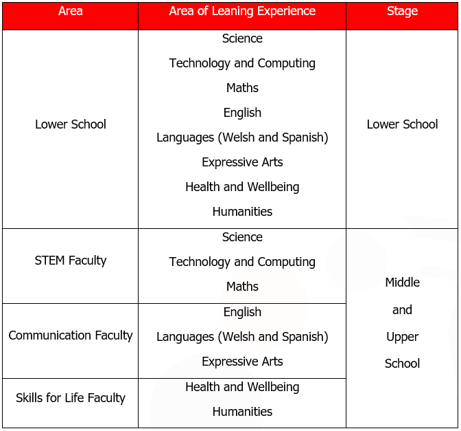 At Ysgol Bro Taf, the curriculum is structured within Lower Middle and Upper School;
