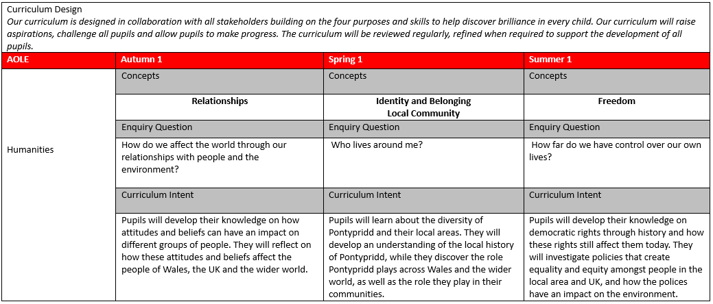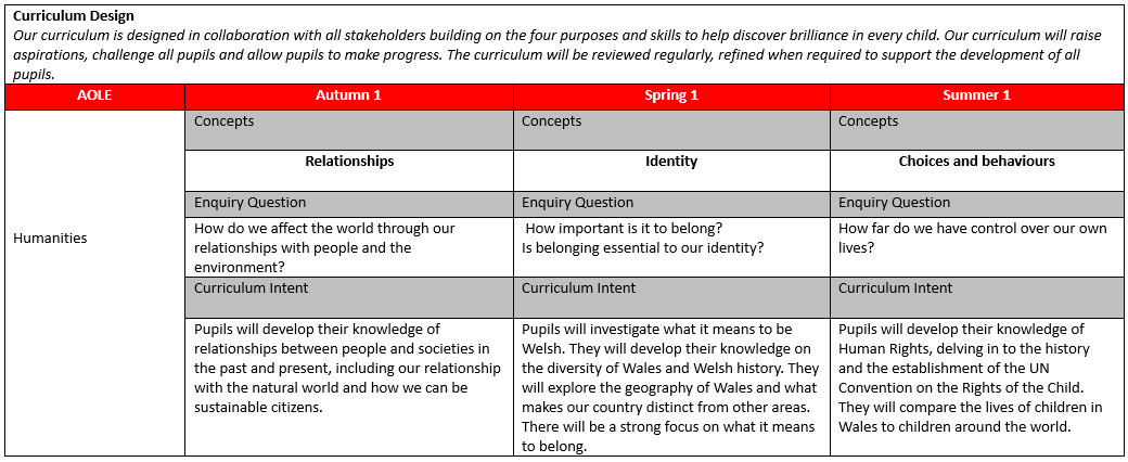 Welcome to Humanities. This part of our curriculum is designed to spark curiosity and deepen pupils’ understanding of the world, both past and present. Through exciting lessons and activities, pupils will explore history, geography, religion, values, ethics, and more, learning how people, places, and events are connected. They will develop critical thinking skills, gain insight into different cultures and perspectives, and build a sense of belonging to their community, Wales, and the world. By encouraging exploration and reflection, Humanities helps pupils grow into informed, ethical citizens, ready to contribute to society. Join us in nurturing our pupils’ curiosity and understanding!
