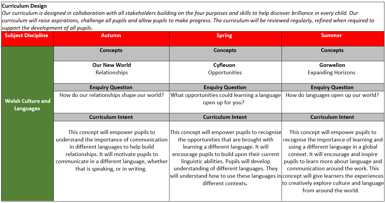 Welcome to Languages. This part of our curriculum explores the fascinating world of communication, helping pupils develop skills in Welsh, English, and international languages. Through exciting lessons and activities, pupils will master the art of listening, speaking, reading, and writing, while discovering the beauty and diversity of languages and cultures. This multilingual approach sparks curiosity, builds confidence, and encourages creative expression. By learning to communicate across languages, pupils gain a deeper understanding of the world and their place in it, becoming adaptable, empathetic citizens. Join us in supporting our pupils’ language journey and fostering a lifelong love of communication!